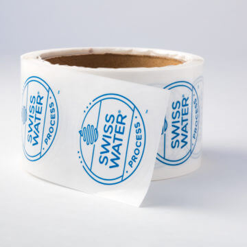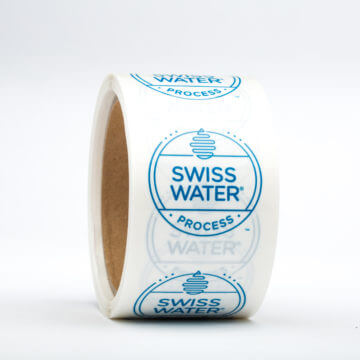 It's hard to taste the difference in regular and Swiss Water® decaf, so a 1" logo sticker helps your customers see the difference.